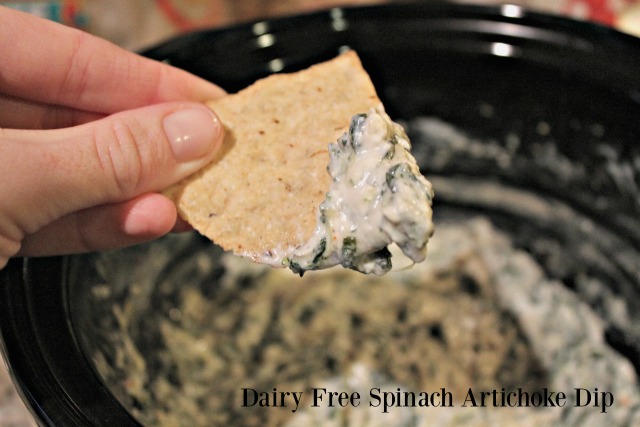The crockpot Dairy Free Spinach Artichoke Dip is quick and easy to make. Enjoy with any cracker or sliced vegetables!