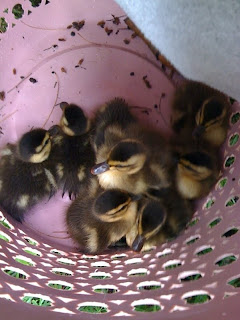 My Momma, sister in law C, and Brother saved the babies this morning by prying off the grate and using a net to fish the little duckies out to safety. HOoray!!! She sent me this picture of them safe in a laundry basket but won’t answer her phone so I don’t know what they are going to do with them. Aren’t they so cute???? I loves them. I wish I had them to put in my bathtub and follow me around quacking all day long.