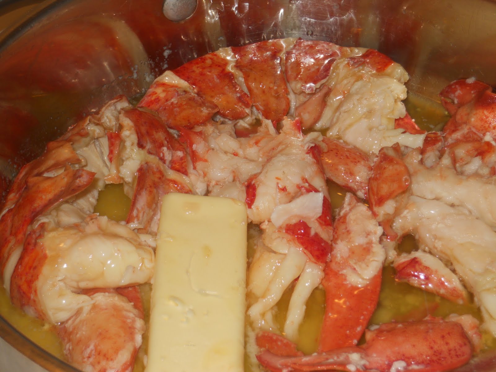 1. Begin to melt the stick of butter over low-med heat. Add the lobster meat. Cook until butter is melted and lobster meat is tender.