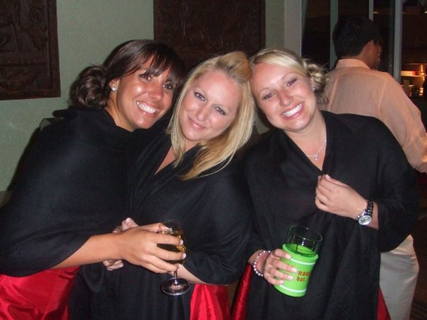 Three bridesmaids… cousin Samantha is taking advantage of the koozie! It was so cold at the wedding that everyone’s little fingers were freezing off, so all of the girls used their koozies – atleast for the glasses that fit inside!