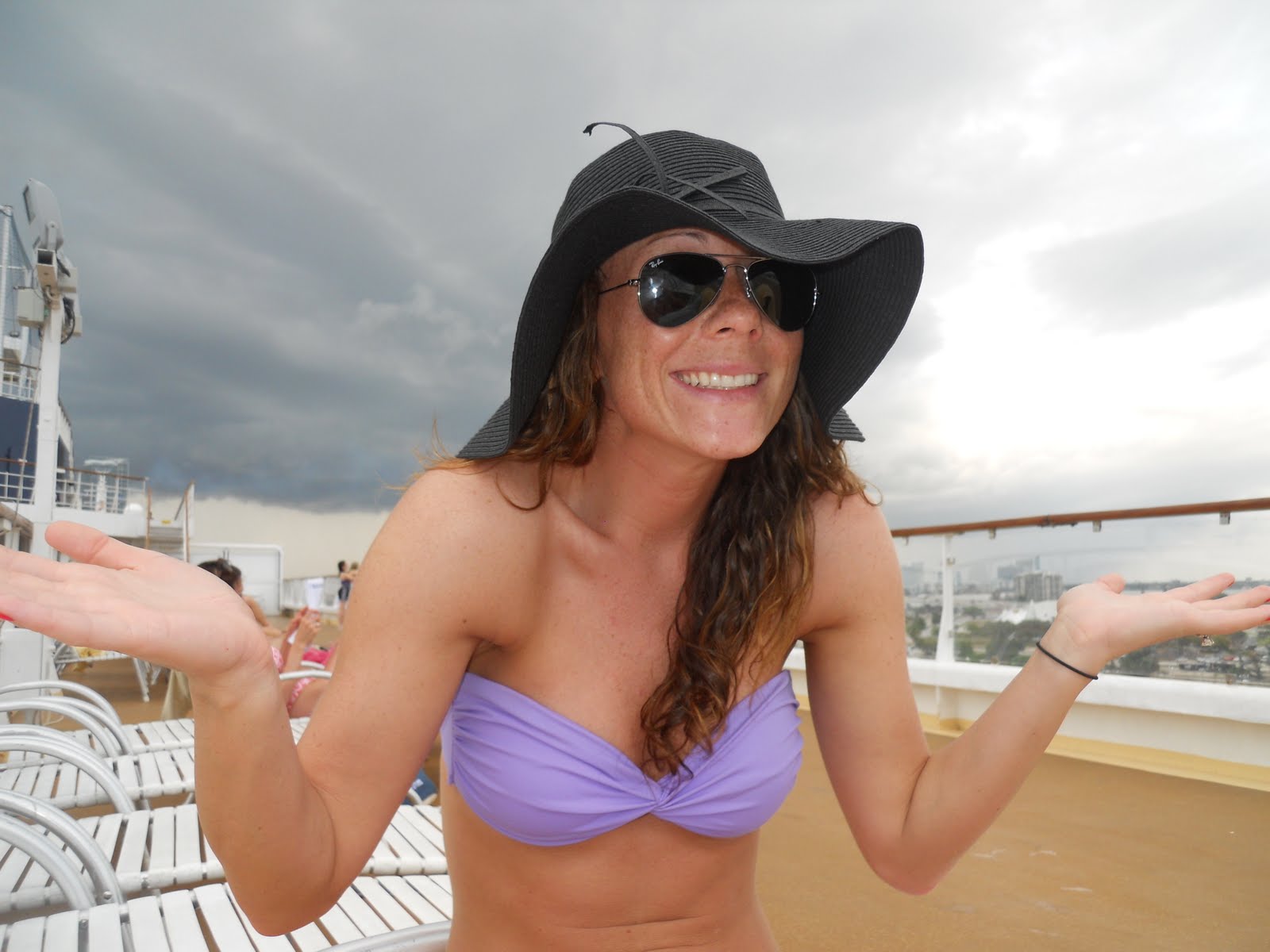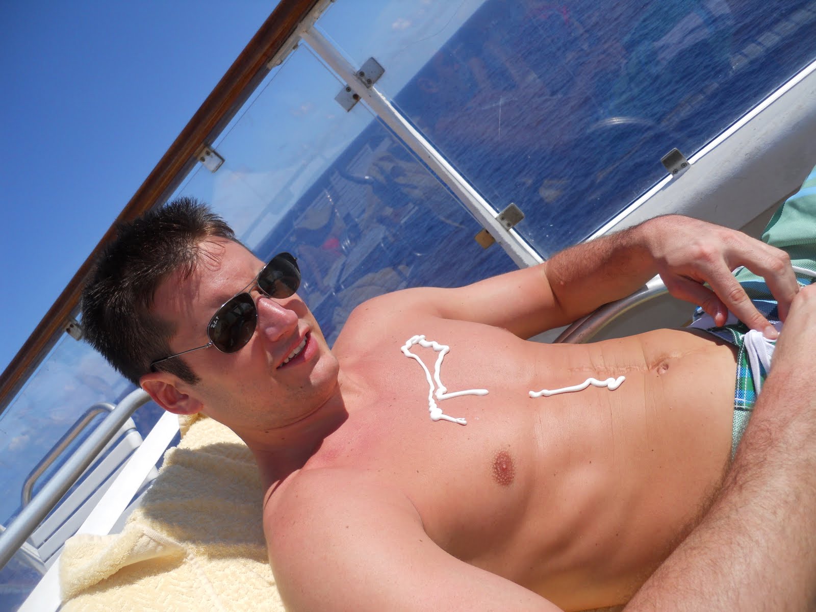 The next morning we headed to the gym, then the deck, where we had some fun with sunscreen that looked like bird poop…