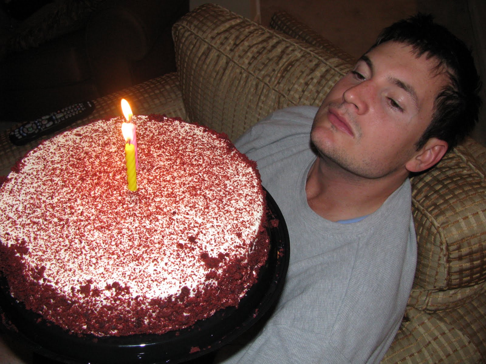 Happy Early Birthday, Mr. Bear! Did you make that cake? I love red velvet. Have a great time on your trip. Are you coming through Memphis? No more Charlie Sheen dreams…thank God!