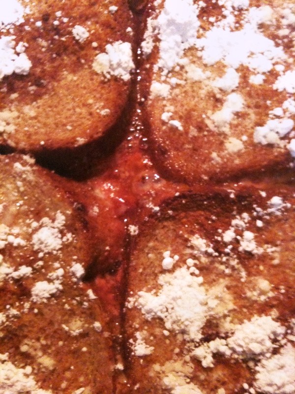 6. Enjoy a big steamy slice topped with powdered sugar and extra strawberries!