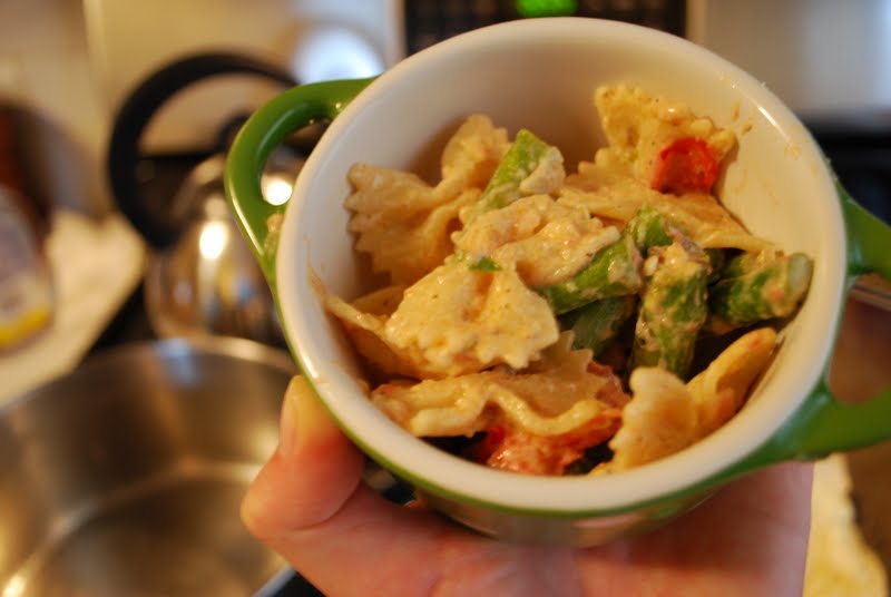 Roasted Asparagus and Cherry Tomatoes with Goat Cheese and Bow Tie Pasta in Shallot Lemon Vinagrette