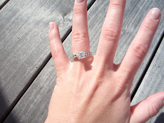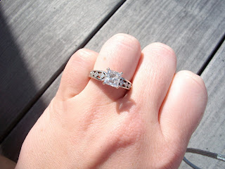 I don’t think I have ever shown my friends in blogland my GORGEOUS engagement ring…wanna see it?? I don’t have any pretty ring shots yet, but for now you can peek at my terrible photographic ring shots.
