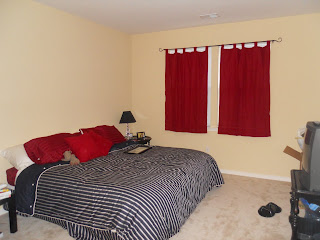 Mr. Bear and I are quite proud of ourselves for installing a curtain rod this morning without a drill. Our bedroom is starting to look a little more like a bedroom and less like a prison cell with a huge bed.